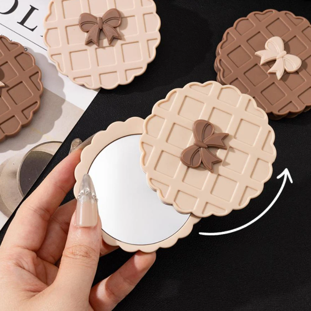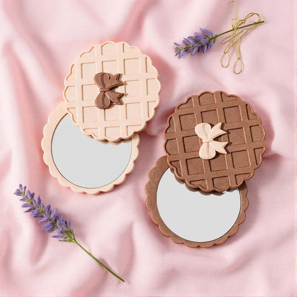 --The waffle slide design is a double-sided mirror that imitates the appearance of waffles, which makes people happy at first sight.