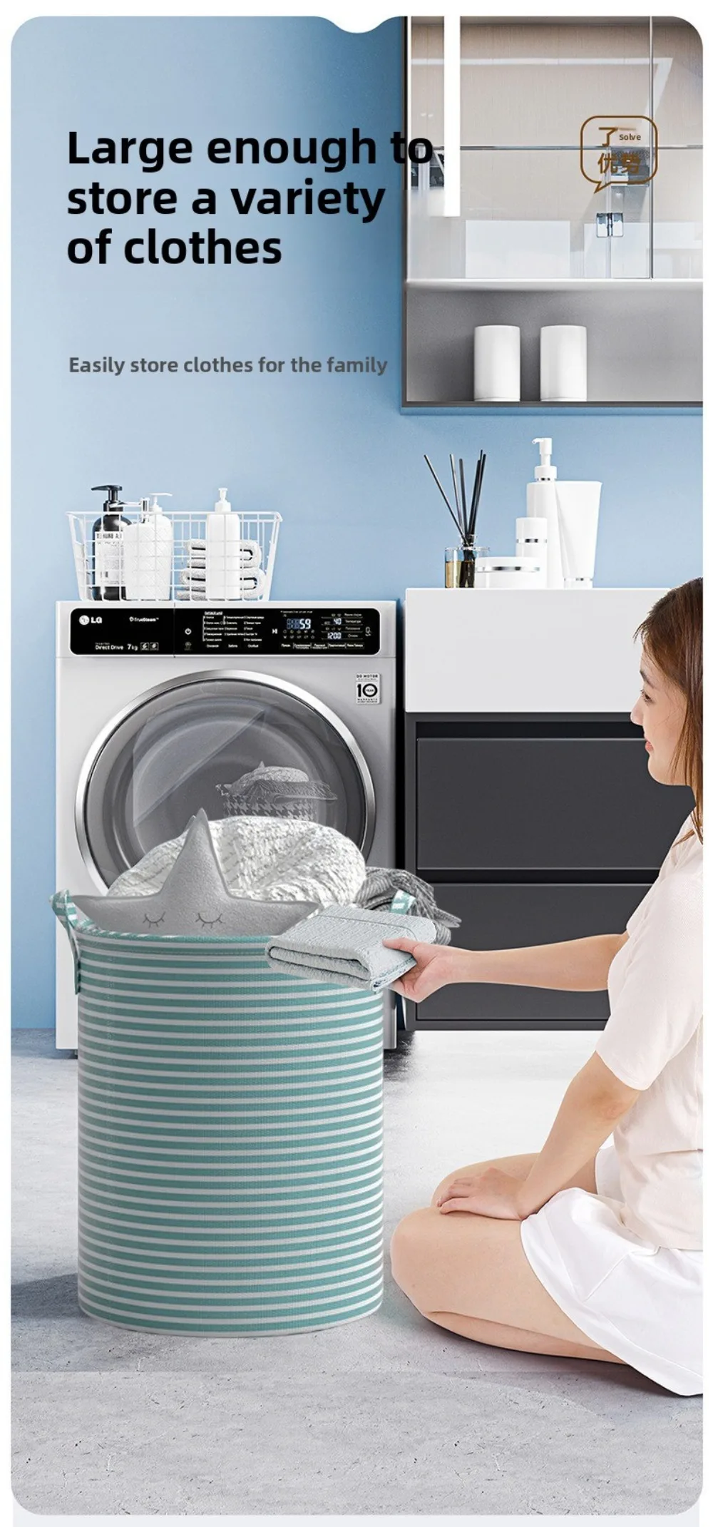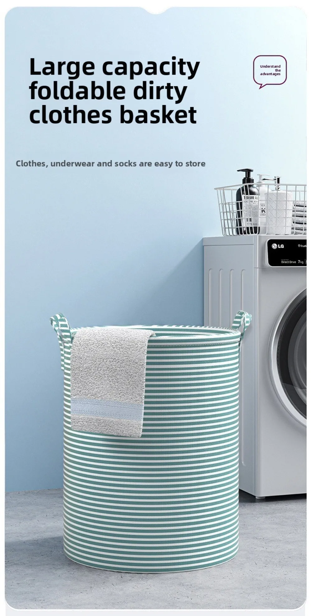 Large Capacity :With its large capacity, this laundry basket can accommodate a substantial amount of clothes.